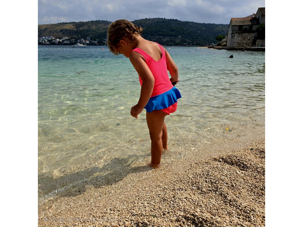 Modelka na fotkách měří 100 cm a má na sobě plavky ve velikosti 110/116 (a ještě do nich potřebuje dorůst).
