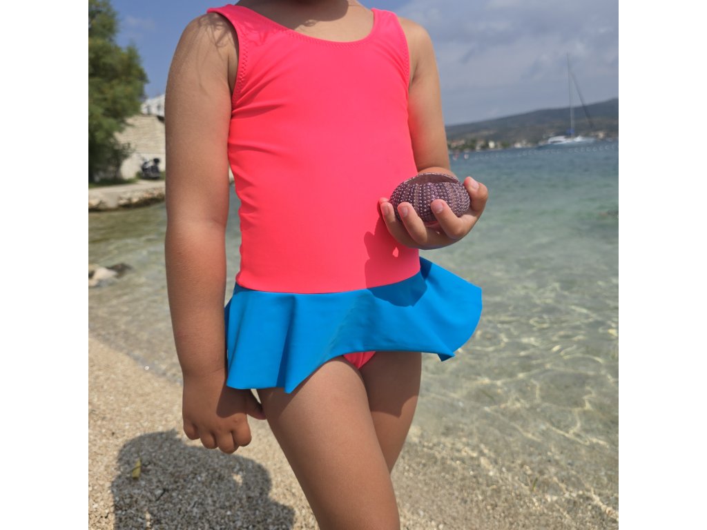 Dokonalá volba pro každou malou vodní vílu! 💕 Neonově růžové dvoudílné plavky s veselým žlutým volánkem zaručí, že vaše malá princezna bude vždy zářit – ve vodě i na souši! 🔆...