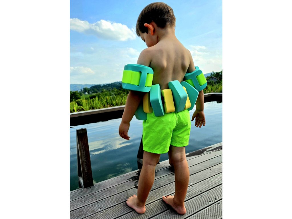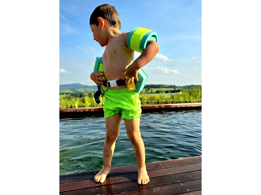 💚 Neonově zelená barva – vidíte svého malého dobrodruha okamžitě, ať už řádí ve vodě, nebo běhá po pláži